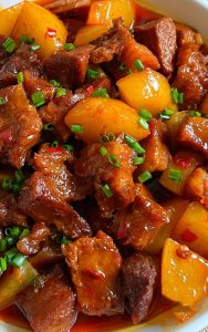 这道菜的特点是牛肉酥烂,土豆软糯,汤汁浓郁,非常下饭。