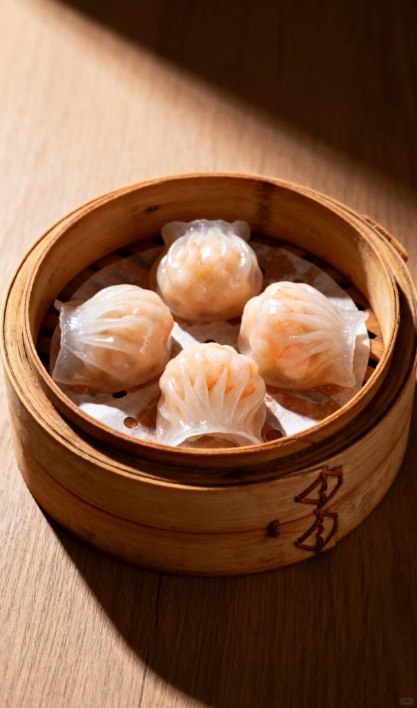 最风雅时,茶楼设有曲艺台,老茶客听着粤曲,一坐就是半日,构成了“得闲饮茶”的生活哲学 世界的广式早茶 如今从旧金山到悉尼,虾饺烧卖与咖啡牛排在早午餐桌上平分秋色。这份源自珠江三角洲的饮食智慧,正成为全球华人共同的乡愁密码 茶点美学:掌心里的岭南风情 虾饺:半月凝脂映琥珀 澄面制的饺皮如羊脂凝露,隐约透出粉红虾仁。